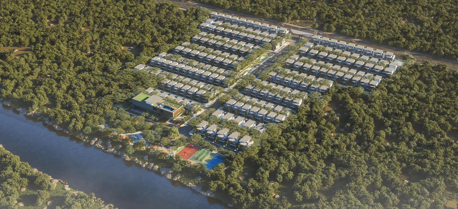 At Riverscape, every villa is designed with high ceilings, floor-to-ceiling glass, and private sit-outs to create seamless connections with nature.